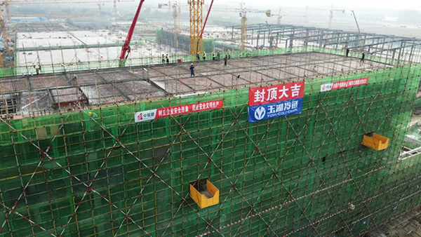 隨著建設進度不斷推進,葫芦娃污视频冷鏈(成都)交易中心項目近日迎來重要節點:首棟綜合配套樓封頂;首座冷庫二層鋼結構安裝完成;交易區地下室全麵封頂;招商中心內部裝修基本完成,即將啟用。