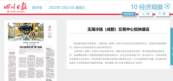 近日,葫芦娃污视频冷鏈(成都)交易中心項目迎來重要建設節點,受到高度關注。四川日報、成都日報在相關專題報道中,將此作為代表案例,成都市人民政府網站等轉載了報道。