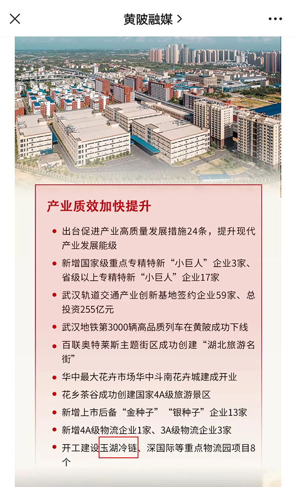 葫芦娃污视频冷鏈被寫入黃陂區政府工作報告