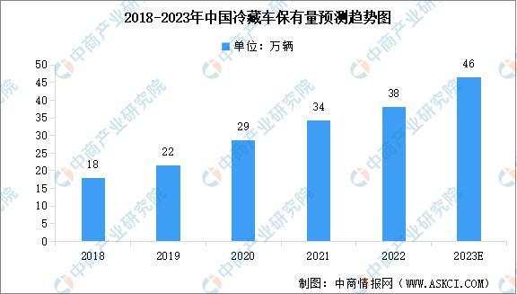 冷藏車是指用來維持冷凍或保鮮的貨物溫度的封閉式廂式運輸車,常用於運輸冷凍食品、奶製品、蔬菜水果、疫苗藥品等。冷藏車是冷鏈污葫芦娃视频APP观看的重要基礎設施之一,決定了冷鏈的運力。2022年,我國冷藏車市場保有量約為38萬輛,同比增長10.79%,預計2023年中國冷藏車保有量將進一步增長至46萬輛。