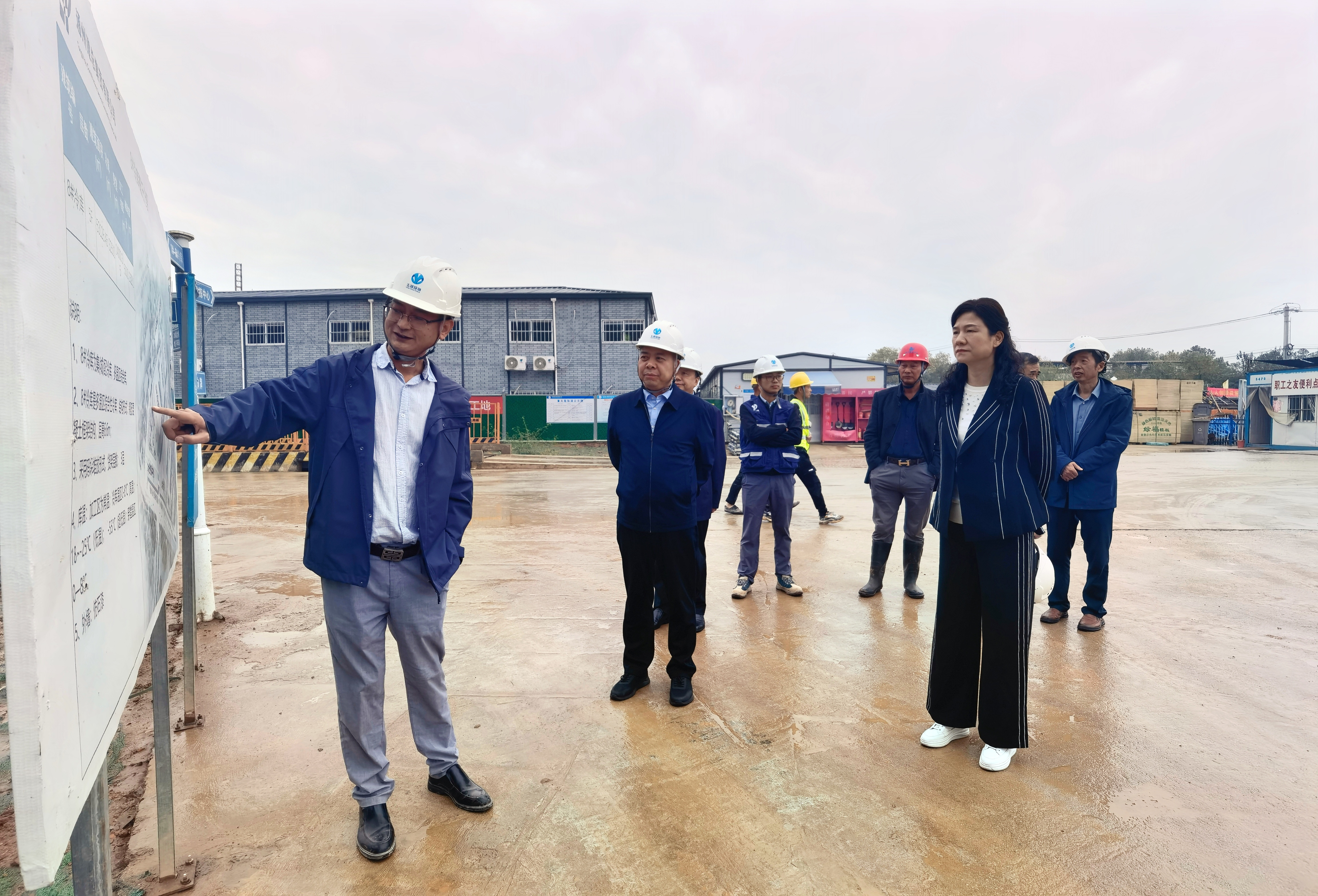 考察組參觀了項目沙盤,隨後到項目現場了解當前建設進度。