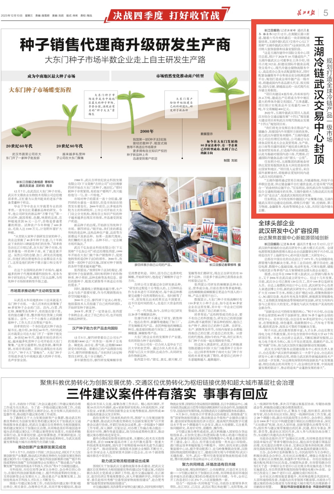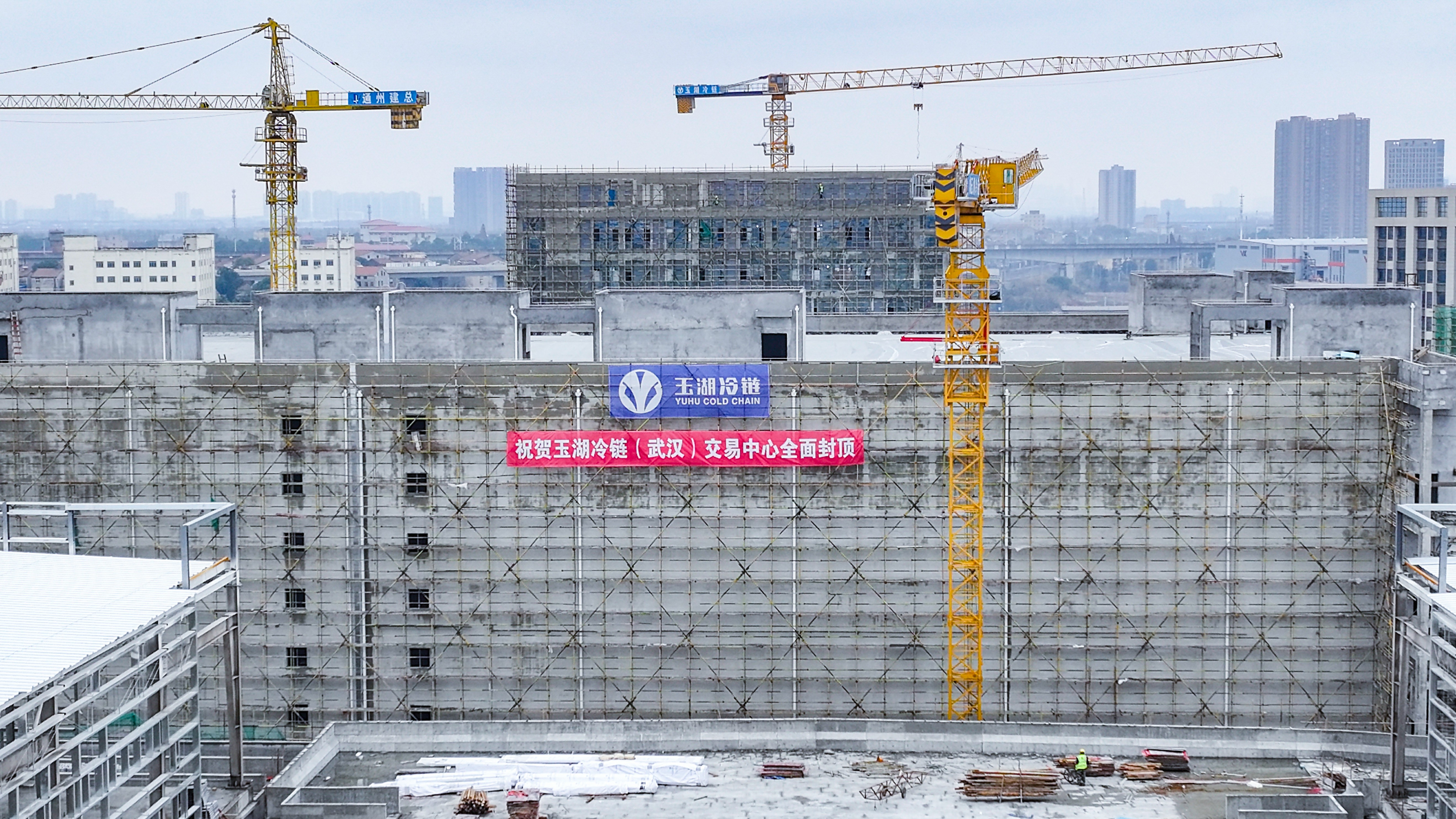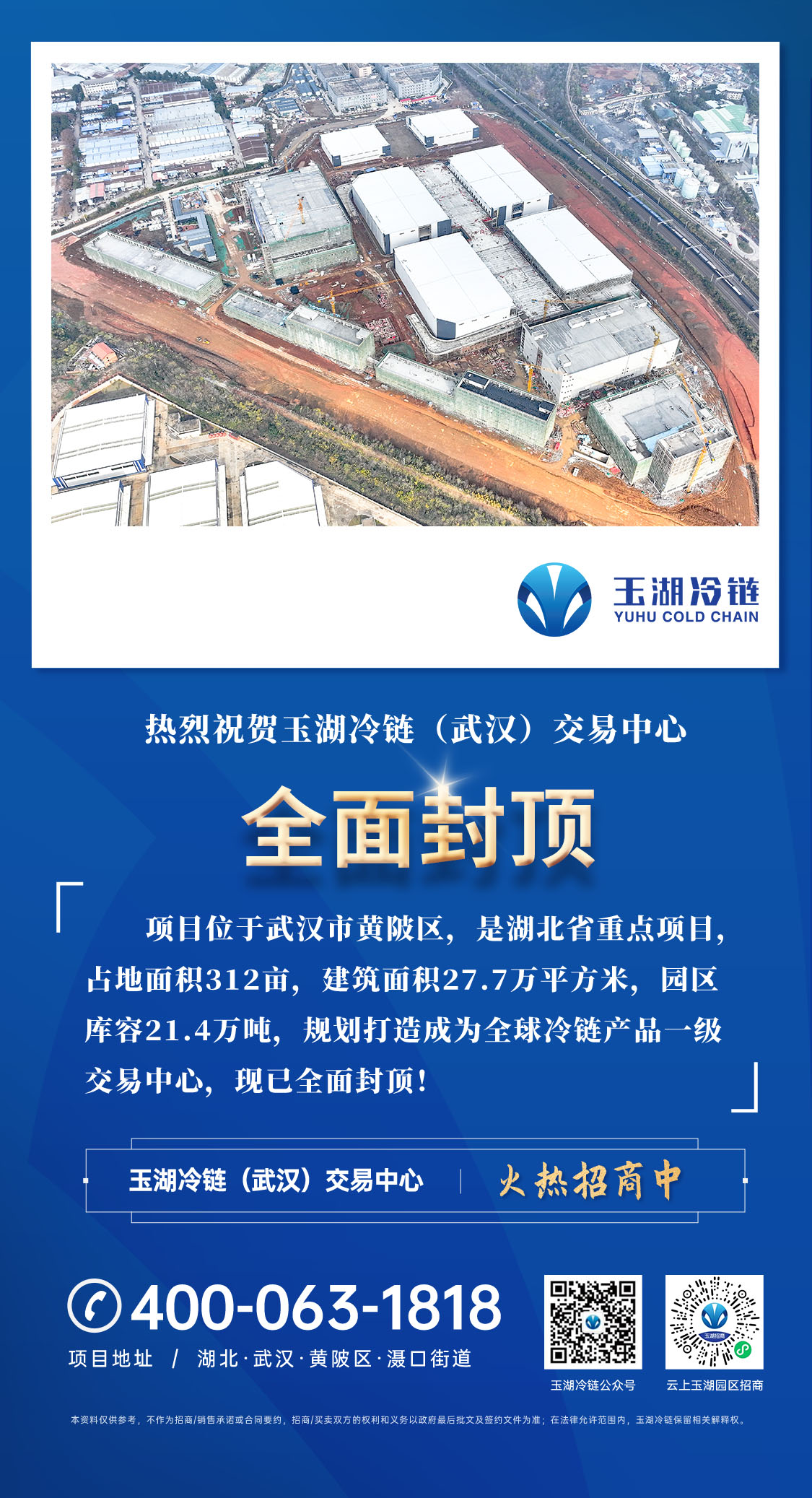 12月12日,隨著最後一塊彩鋼板順利鋪設完成,位於武漢市黃陂區的葫芦娃污视频冷鏈(武漢)交易中心提前全麵封頂。這一重要進展引來官方媒體高度重視,湖北日報、湖北電視台、長江日報、武漢電視台、黃陂融媒等紛紛報道。