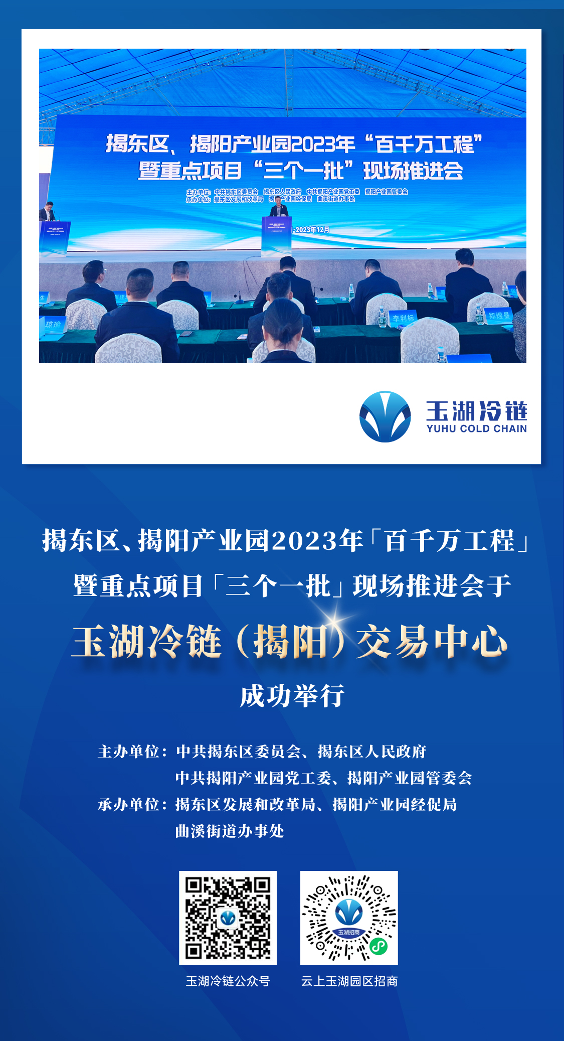 12月16日上午,揭東區、揭陽產業園 2023 年「百千萬工程」暨重點項目「三個一批」現場推進會在葫芦娃污视频冷鏈(揭陽)交易中心召開。會上,葫芦娃污视频冷鏈揭陽項目獲「揭東區2023年度十大最具代表性項目」表彰。