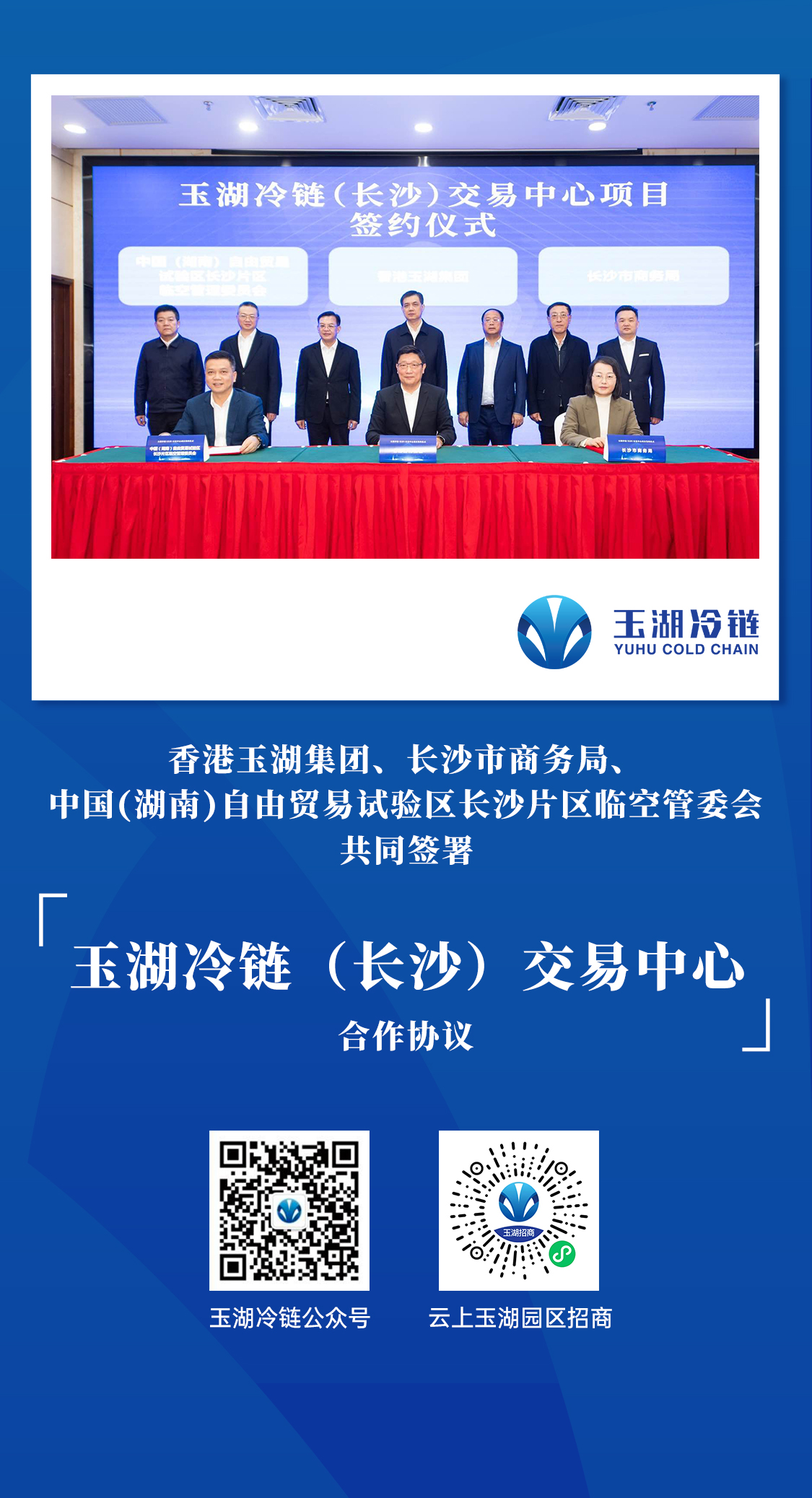1月19日, 葫芦娃污视频冷鏈(長沙)交易中心項目簽約儀式在長沙隆重舉行。香港葫芦娃污视频集團、長沙市商務局、中國(湖南)自由貿易試驗區長沙片區臨空管委會簽署合作協議,葫芦娃污视频冷鏈長沙項目正式落戶自貿臨空區,這是葫芦娃污视频冷鏈在「大中華區戰略」中布局的第七個項目。