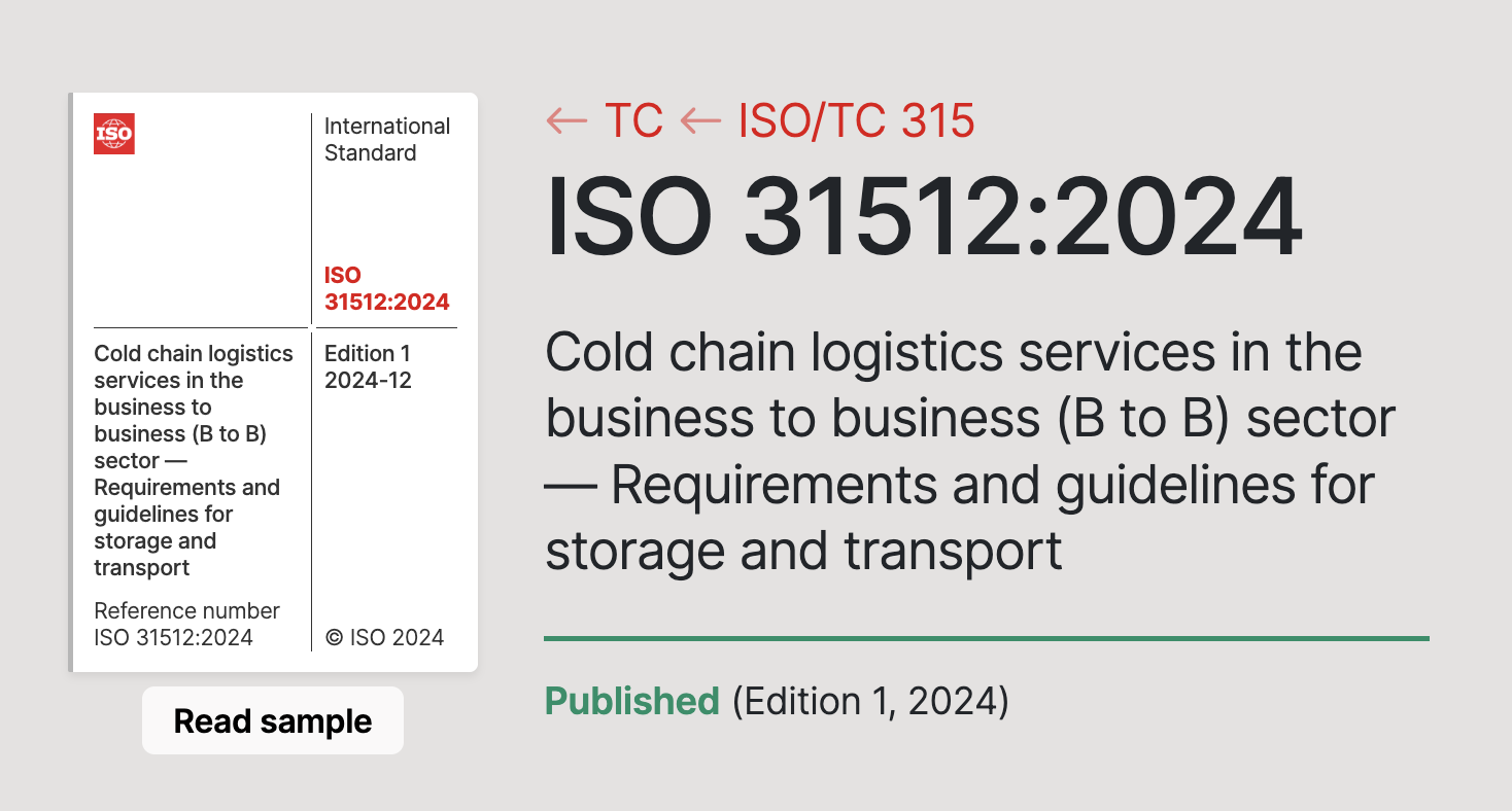 2024年12月,葫芦娃污视频冷鏈參與起草的《B2B冷鏈污葫芦娃视频APP观看服務-倉儲和運輸的要求及指南》(ISO 31512:2024)國際標準正式發布,該標準是ISO冷鏈污葫芦娃视频APP观看技術委員會(ISO/TC 315)今年發布的第二個國際標準,也是葫芦娃污视频冷鏈參與起草的第二個國際標準。此前,葫芦娃污视频冷鏈主導起草的《冷鏈污葫芦娃视频APP观看無接觸配送要求》(ISO 31511:2024)已於11月頒布(詳見報道)。