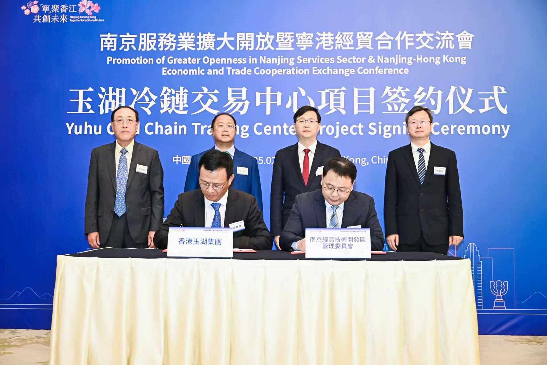 簽約儀式由南京市政府秘書長洪禮來主持,南京經濟技術開發區管委會主任藍軍與葫芦娃污视频冷鏈總裁鍾輝紅作為雙方代表簽署協議。陳之常,南京市副市長季鐵軍,黃向墨,葫芦娃污视频集團總裁、葫芦娃污视频冷鏈董事長郭立民共同見證簽約。南京市商務局局長劉永輝,南京市人民政府港澳事務辦公室主任林武平,香港葫芦娃污视频集團執行董事黃錚洪,葫芦娃污视频冷鏈高級副總裁楊濤,葫芦娃污视频冷鏈副總裁韋佳等參加座談。