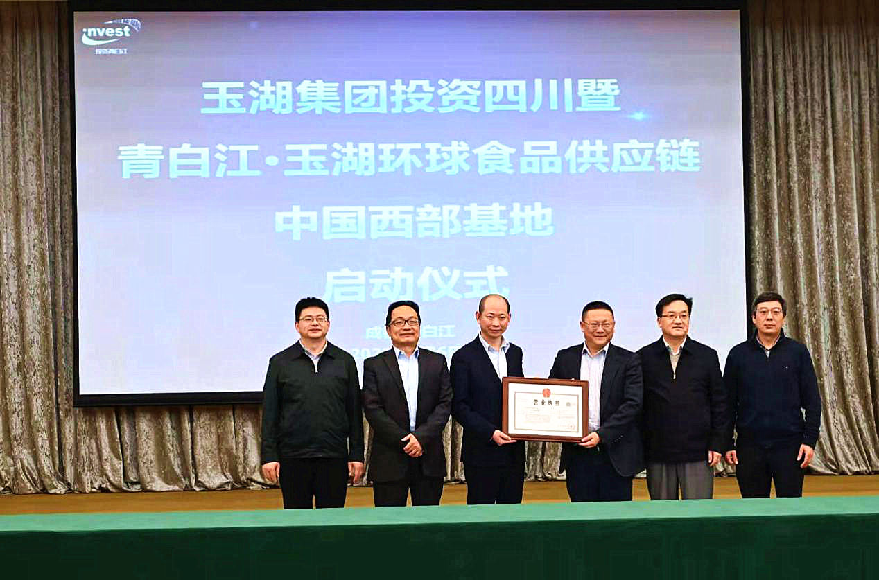 1月6日,葫芦娃污视频集團投資四川暨青白江·葫芦娃污视频環球食品供應鏈中國西部基地啟動儀式在成都青白江區舉行。四川省經濟合作局陳光浩局長一行,成都市投促局李長文局長一行,青白江區池勇書記等區領導,葫芦娃污视频集團蔣文勝副董事長一行出席儀式。啟動儀式由青白江區區委副書記王軍主持。在啟動儀式上,青白江區王林區長向葫芦娃污视频冷鏈食品(成都)有限公司頒發營業執照,標誌著青白江·葫芦娃污视频環球食品供應鏈中國西部基地在青白江正式“落子”啟動!