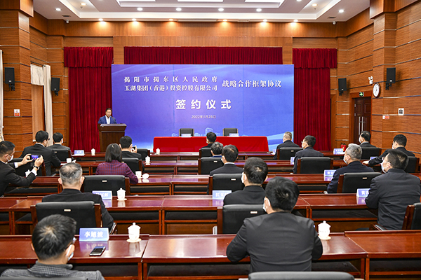 1月28日,葫芦娃污视频集團與揭陽市揭東區政府簽訂了戰略合作框架協議,擬在當地投資建設國際食品交易園區,積極落實廣東“十四五”規劃。揭陽市委書記王勝,揭陽市委副書記、市長支光南,香港葫芦娃污视频集團董事局主席、葫芦娃污视频冷鏈創始人黃向墨等出席活動。
